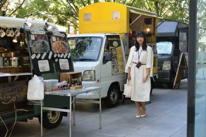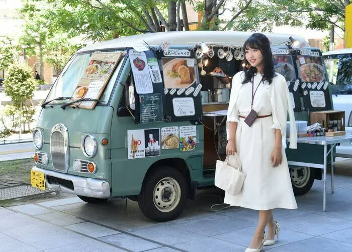 撮影終わりには、フードトラックからいい香りが…そろそろ本当のランチタイムが近づいてきた。「わぁ、おいしそう!本当に何か買って帰っちゃおうかな?」と話す余裕まで。初仕事にして堂々たる存在感を発揮し、撮影はあっという間に終了した。