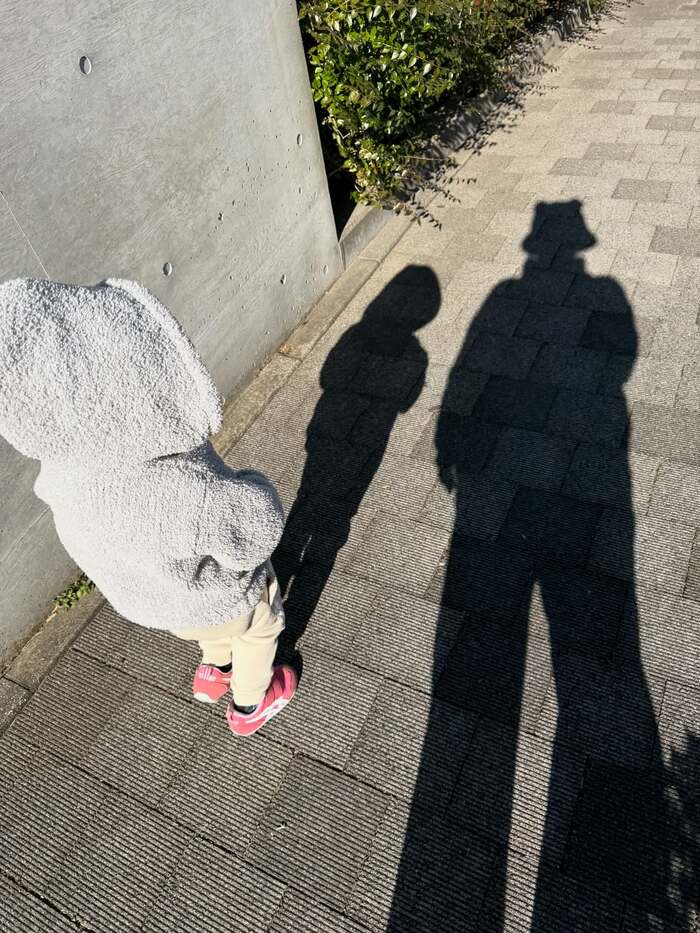 そして、“ぷくぷくちゃん”とのお散歩ショットでは、“ぷくぷくちゃん”はもこもこの上着のフードをすっぽりと頭の先までかぶり、丸山さんの隣を歩いています。2人は太陽に背中を向けて歩いているのか、地面に長い影が2つ伸びていて、穏やかな時間やぬくもりが自然と伝わってきます。