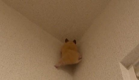 お尻をフリフリさせながら、かなりのハイペースで天井を目指します。その姿はさながら“忍者ハムスター”!