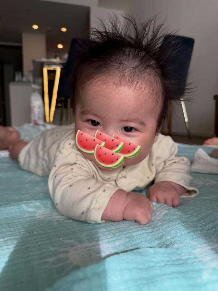 それぞれのばっちりカメラ目線ショットを収めた中川さんは、投稿文で「コロンコロンするから目が離せません!すぐほぼ寝返りになっちゃう弟くん と ニコニコキャッキャわらうお兄ちゃん」と、双子の息子がそれぞれのペースで、すくすく成長している様子も明かしています。