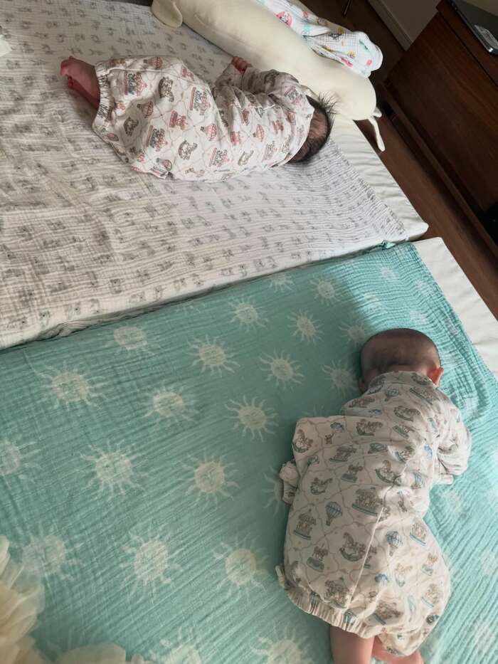 そして、双子たちが、そろって小さな背中を丸めながら寝ている後ろ姿や…