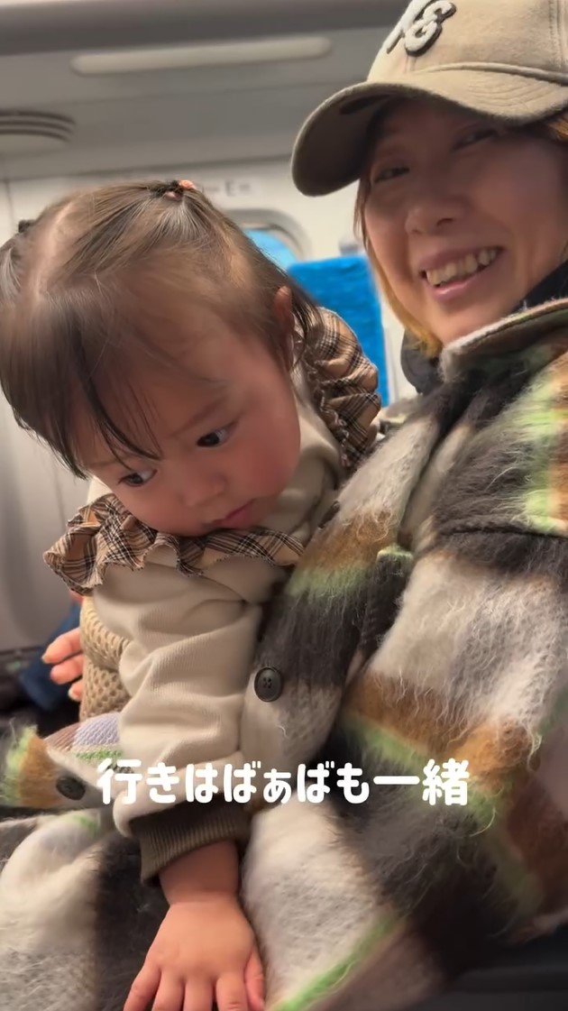 今回、行きの新幹線は西野さんの母も一緒だったそうで、にこりちゃんはおばあちゃんの膝に抱かれて静かに座っています。