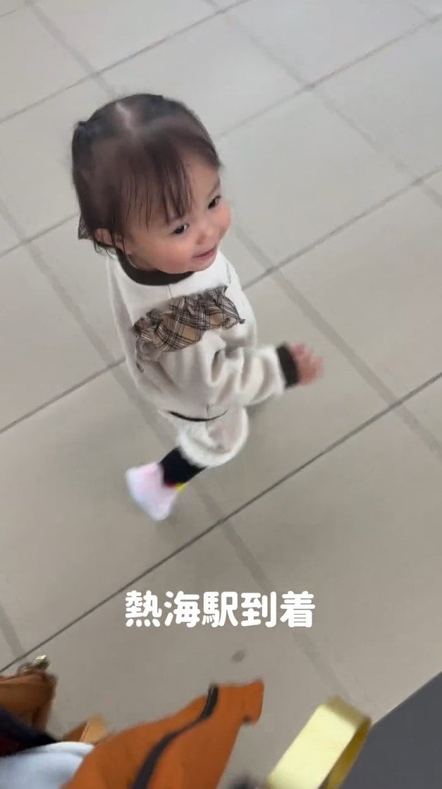 熱海駅へ到着すると、お迎えに来ていたおじいちゃんの元へ。にこりちゃんは、にこにこ笑顔を見せていて、とってもうれしそうです。