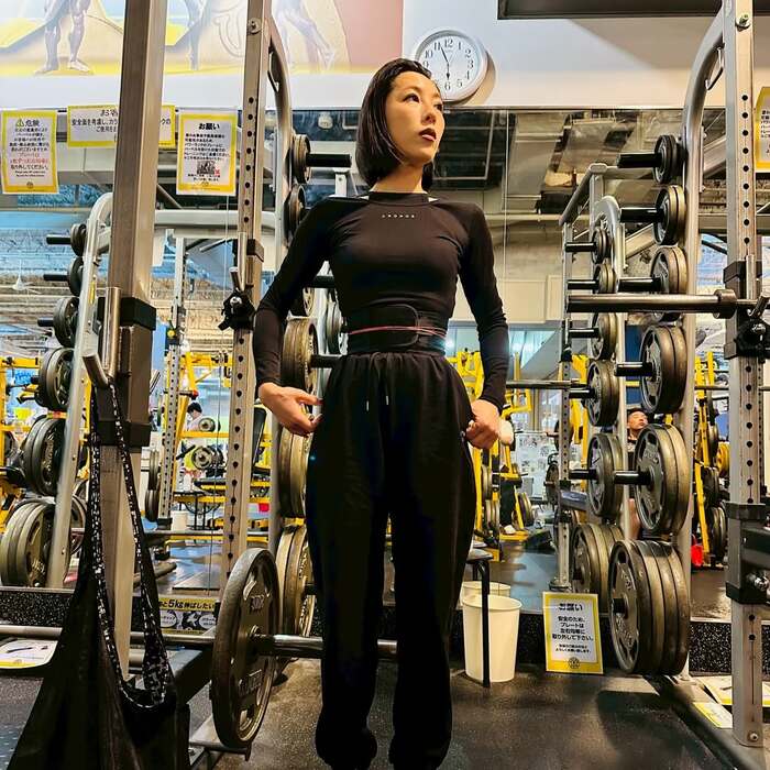 上下黒のピタッと体にフィットした、トレーニングウェア姿でたたずむ矢沢さんですが、そのウエストに注目してみると、かなり引き締まっており、くびれが際立っています!