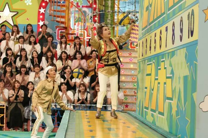 巨大ピンボール台から転がり落ちてくるボールをキャッチする「ピンボールランナー」では、デヴィ夫人がランナーに最年長で挑戦し、激走&大奮闘。対する嵐チームからは、片桐がランナーに挑む。