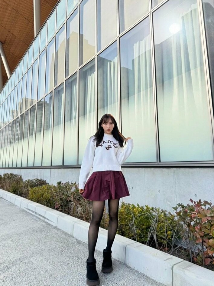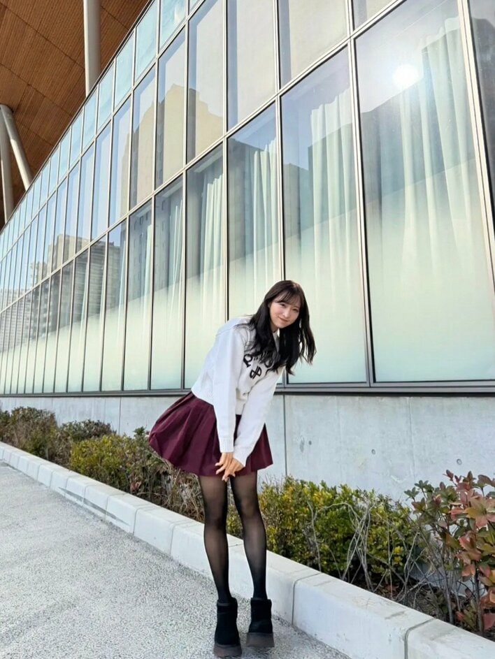 アイドルグループAKB48の小栗有以さんが2026年1月17日にインスタグラムを更新。すらりとした美脚が際立つ、ニットとミニスカートのコーディネートを披露しました。