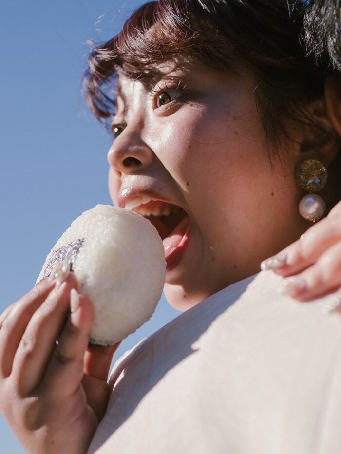 大きなおにぎりに負けず、大きな口を開けて食べようとする姿は躍動感があり、餅田さんもこの写真に関して「もはや2枚目は猛獣」とクスッと笑いを交えて振り返っていました。