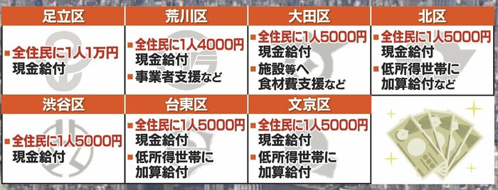 足立区、荒川区、大田区、北区、渋谷区、台東区、文京区