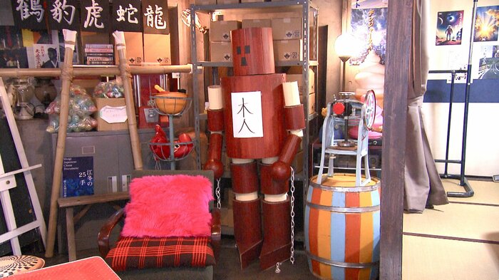 部室には、「木人」と張り紙がされた、大きな茶色の人形が。これは、ジャッキー・チェン主演の映画『少林寺木人拳』(1976年)に出てくる、木製の動く人形を模したもの。劇中でジャッキー演じる主人公は、何十体もの木人と戦い抜きました。