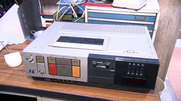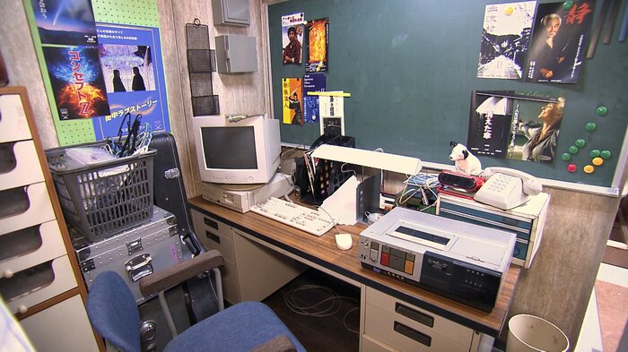 濱尾さんはデスクのイスに座ってみると…「落ち着きますね」と気に入った様子。ここには、VHSを再生するビデオカセットレコーダーもあります。