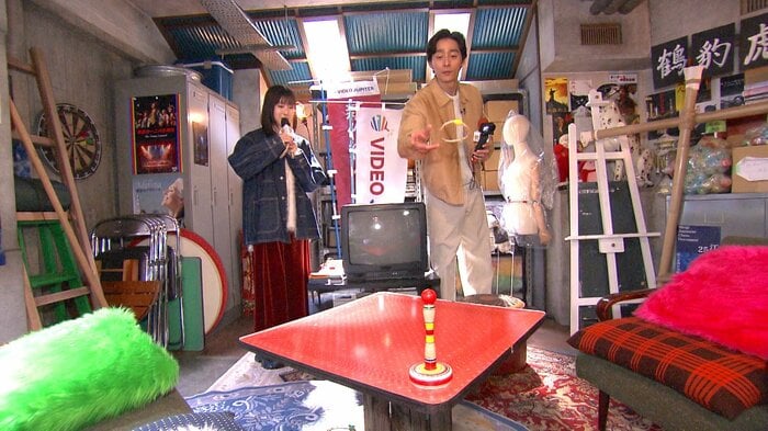 小上がりの和室の脇には、射的が。さらに輪投げも発見し、濱尾さんの提案で急遽、輪投げ大会を開催することに!1人3つずつ輪っかを投げますが…なかなか入らず、「全然ダメだ」と苦笑いする福本さんと濱尾さんでした。