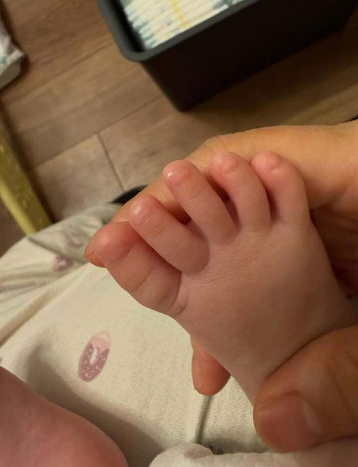 大人の大きな手に包まれた、ぷにぷにとしてそうなかわいらしいあんよが、とってもいとおしくなりますね。