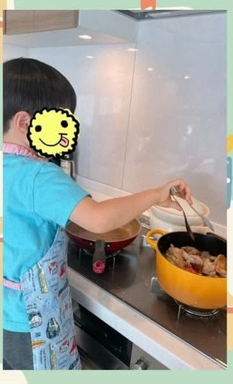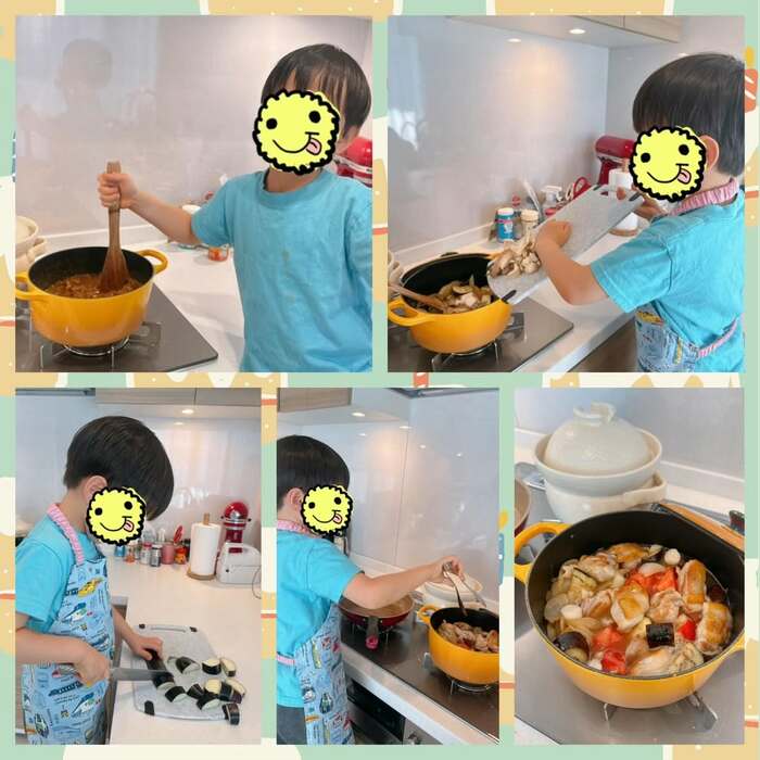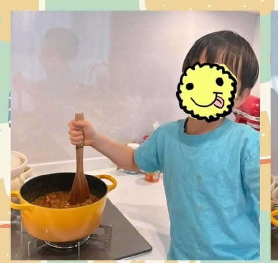 今回の投稿で「今日は、三男が3回目のカレー作りに挑戦しました!作り方を覚えていて、頼もしかったです」と、5歳の三男がカレー作りに挑戦したことを明かし、その様子を公開した小倉さん。
