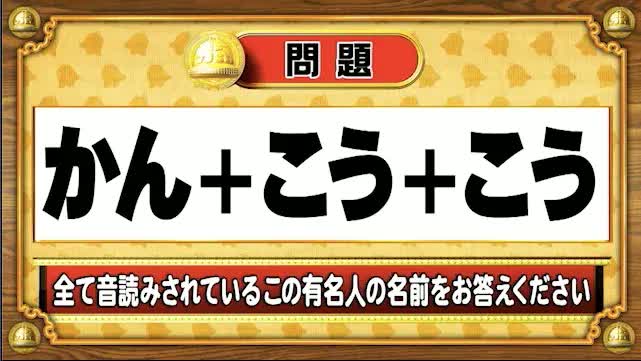 次は、音読み有名人の問題。すべて音読みされているこの有名人の名前をお答えください。