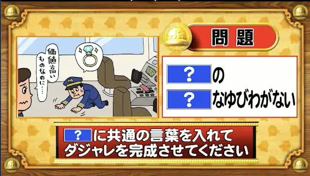 最初は「脳ミングアップクイズ」から、ダジャレ穴埋めの問題。「?」に共通する言葉を入れてダジャレを完成させてください。