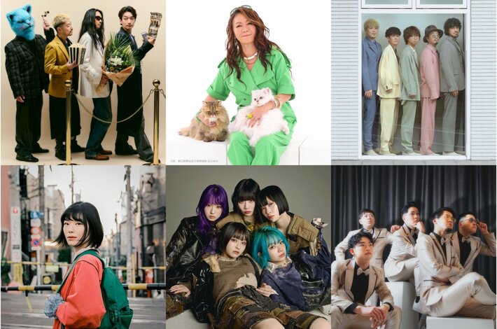ねこの日おめでとうMUSIC FESTIVAL 2026出演者 (上段左→右)Offo tokyo、大黒ニャ季、wacci (下段左→右)にゃんぞぬデシ、ASP、GET BILL MONKEYS