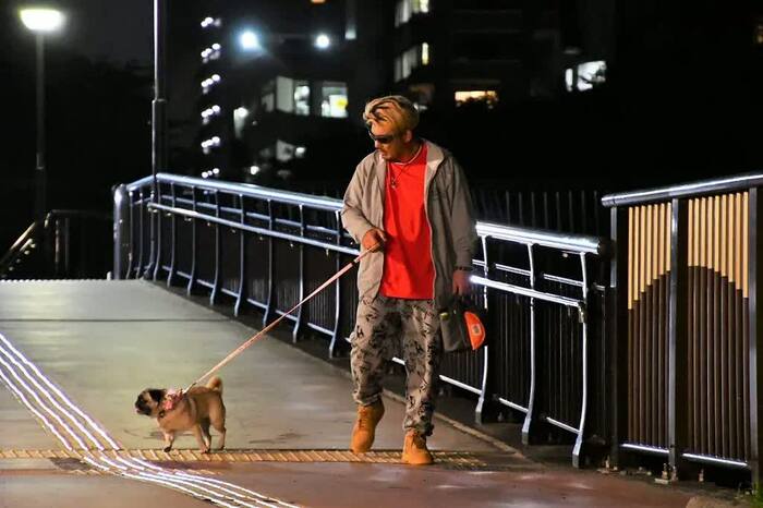 RED RICEが演じるのは、夜でもサングラスをかけ、「おもち」という名のパグのメスを散歩させている強面の男・工藤。