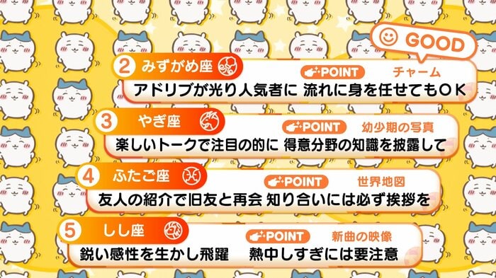 『めざましテレビ』で放送中の「ちいかわ占い」 テレビ放送がない日はお休みで、月~土:朝7時以降に更新予定です。