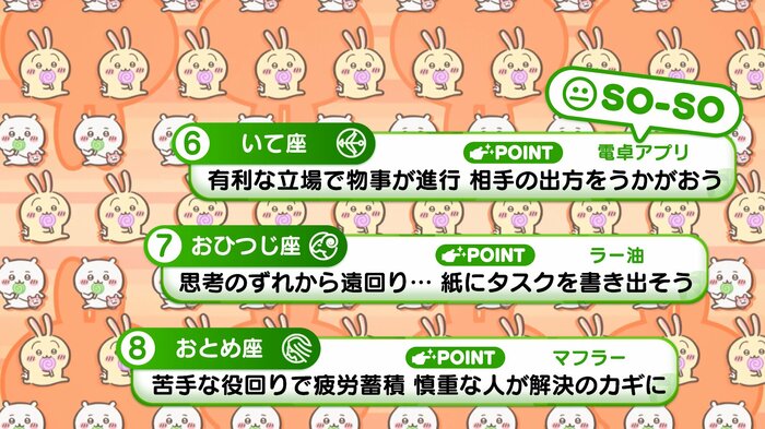 『めざましテレビ』で放送中の「ちいかわ占い」 テレビ放送がない日はお休みで、月~土:朝7時以降に更新予定です。