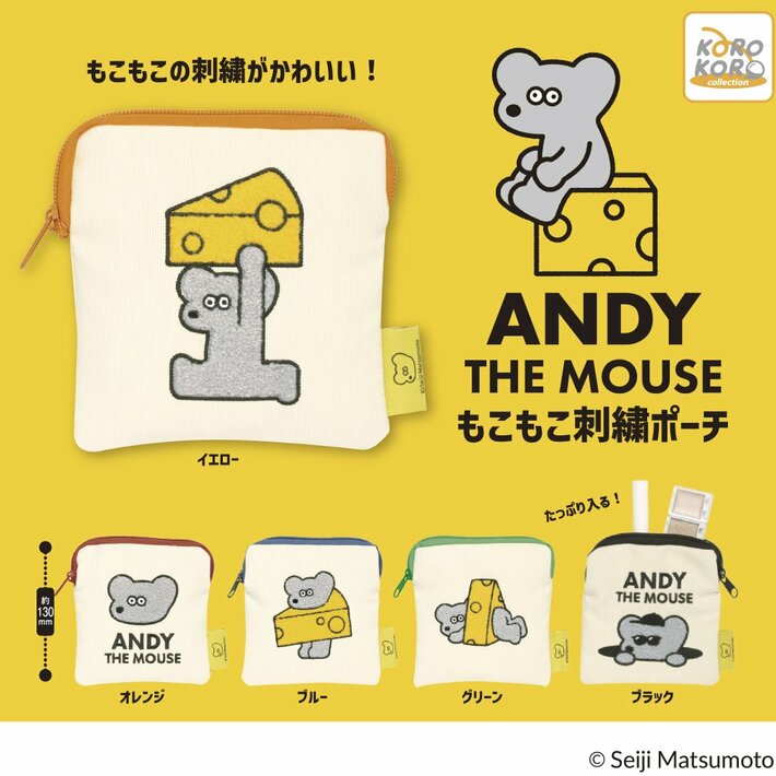「ねずみのANDY」が、もこもこ刺繍ポーチになってカプセルトイに登場!