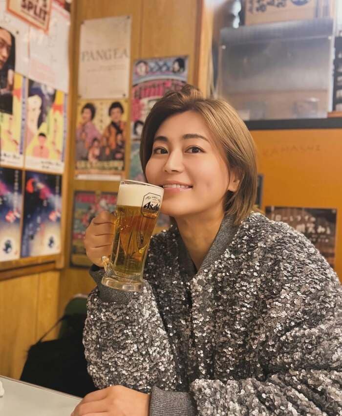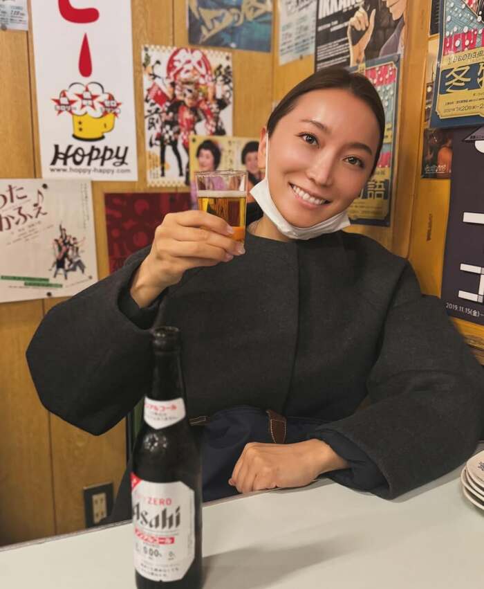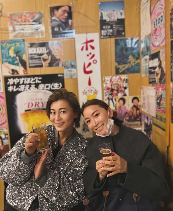 また、スパンコールがあしらわれた煌びやかなアウターを羽織り、生ビールを片手にニッコリと笑顔を向ける1枚も公開。2週間に渡る連日の稽古で張り詰めた気持ちを、少し解きほぐしているような柔らかい表情が印象的です。