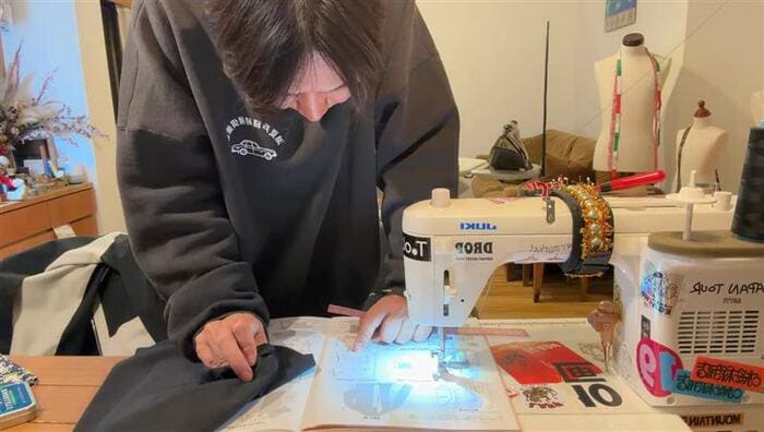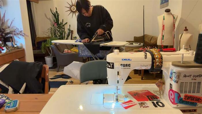 YouTubeでは、広々としたアトリエのような雰囲気漂う自宅でミシン制作をする様子を紹介しています。