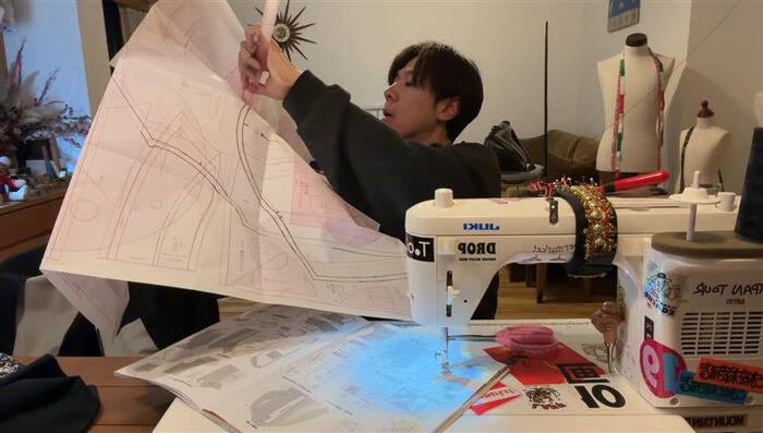 コカドさんは去年、雑誌の企画でオリジナルのジャケットを制作。当時、生地はコットンとポリエステルで作ったそうですが、今回は薄め素材で全て真っ黒にしたデザインで制作するとのこと。企画が掲載された雑誌には、ジャケットの型紙が紹介されていたため「型紙を作って、生地を切って 今やっとミシンに取りかかった」と、雑誌を参考にすでに作業を進めているようです。