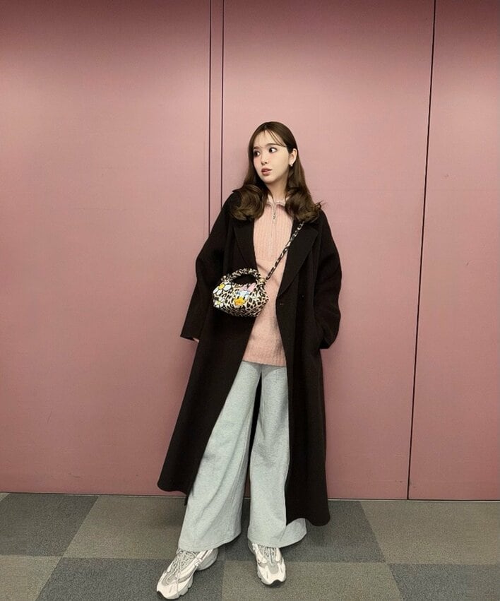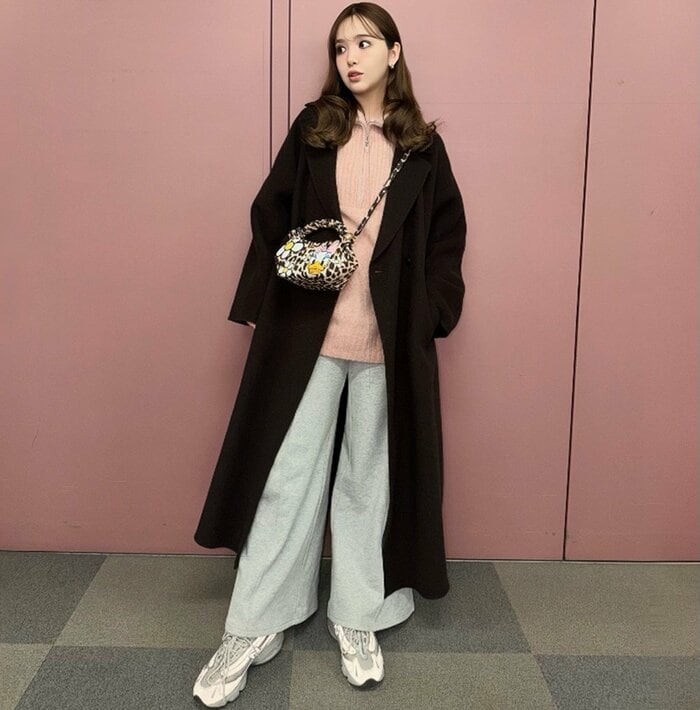 公開された写真には、ピンクのパーカーとグレーのスウェットパンツに黒いロングコートを合わせたカジュアルな私服姿でたたずむ藤田さんの姿が。