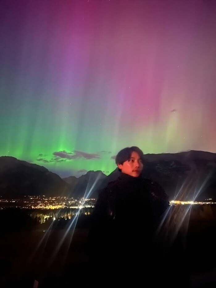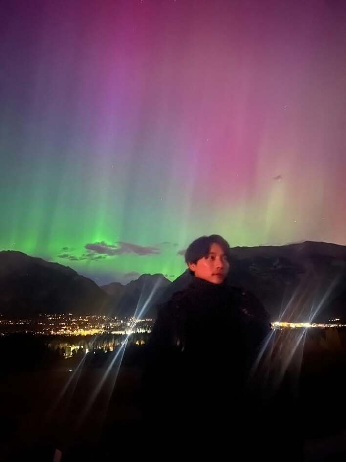 続けて、「奇跡的にオーロラがBanffに5日間滞在のうち2日間も見られました!!」とロケ地・カナダで遭遇した幻想的なショットを公開しました。