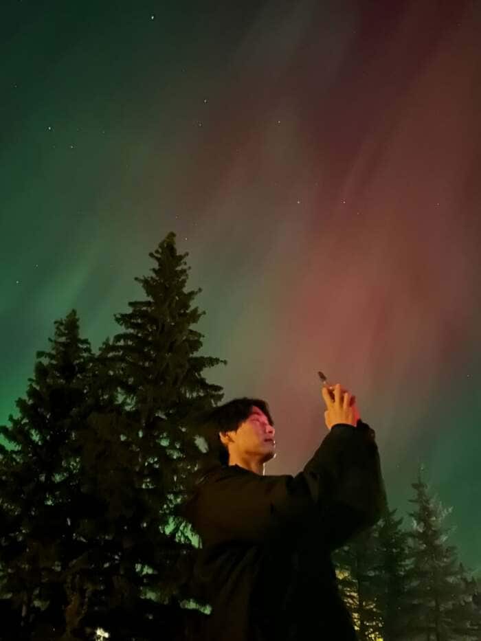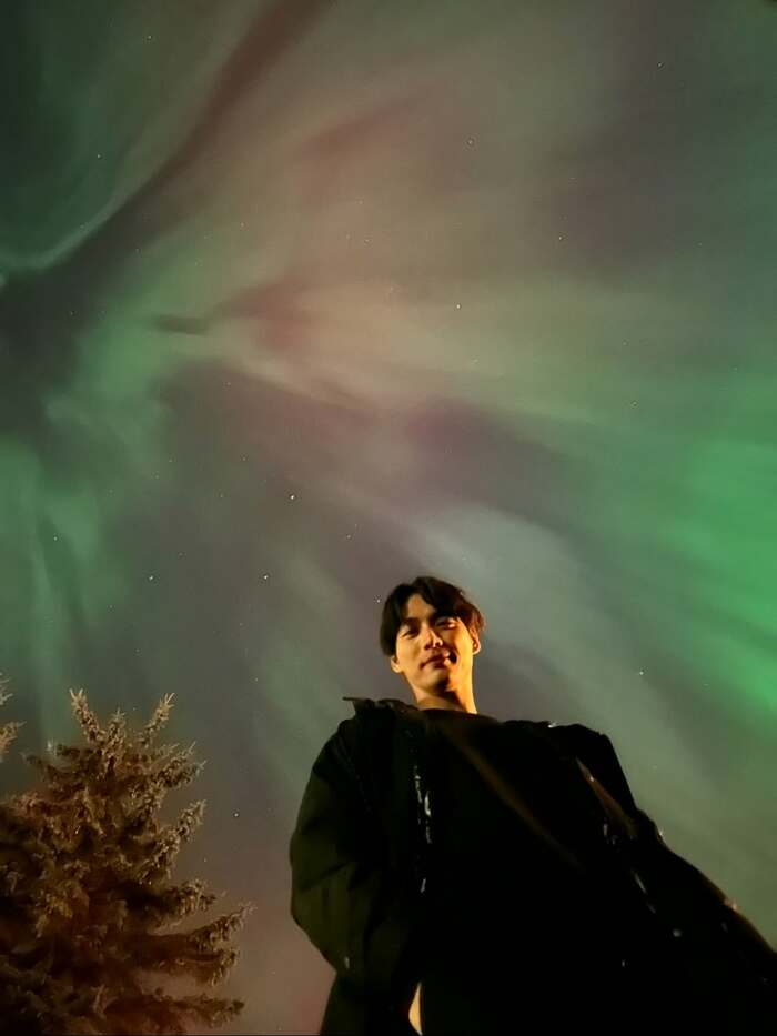 そんな絶景を目の当たりにした福士さんは、スマホをオーロラに向け撮影しているよう。シャッターを切る手が止まらない姿が容易に想像できますね。