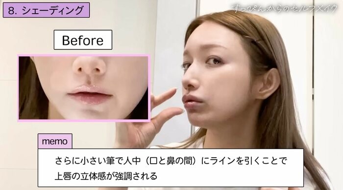このひと手間によって、口元に立体感が生まれ、よりキュートな印象に仕上がるそう。