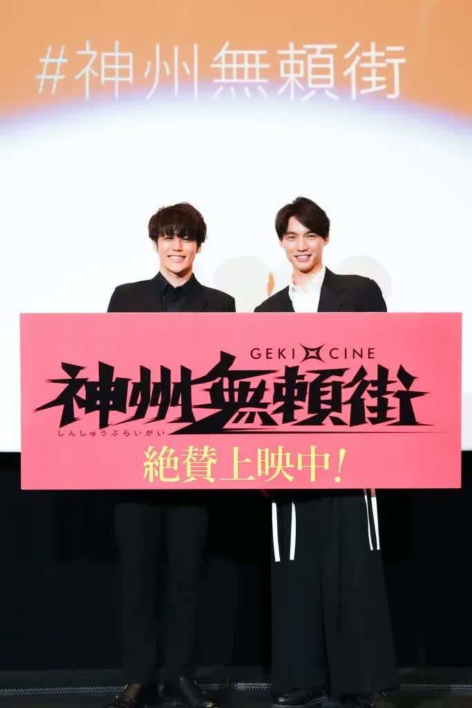 1月14日、ゲキ×シネ「神州無頼街(しんしゅうぶらいがい)」の舞台挨拶が行われ、福士蒼汰さん、宮野真守さんが登壇しました。