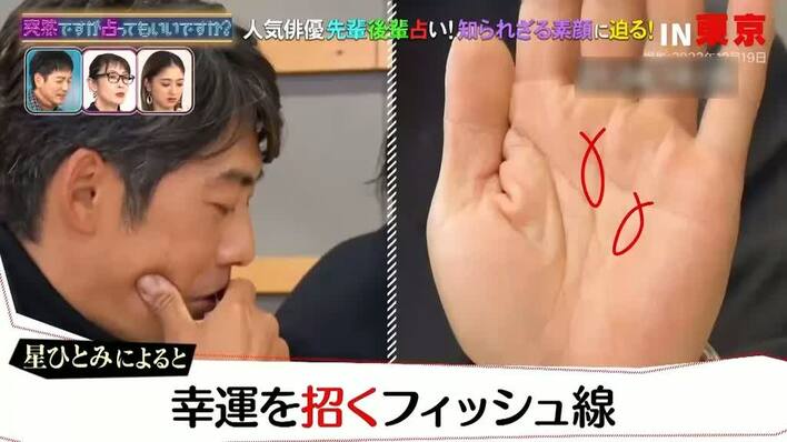 星さんは、反町さんの手相を見ると「すごくきれいですね」と、驚きました。これまで、番組で占ってきたゲストのなかで、一番良い手相をしているのだそう。反町さんはうれしそうに「竜星ほら、見ろよ」と、ニンマリ。
