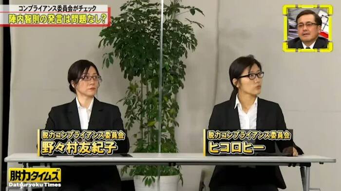 「コンプライアンス委員会」には、ヒコロヒーさん、野々村友紀子(陣内さんとは、大阪NSCの同期)さんが登場。