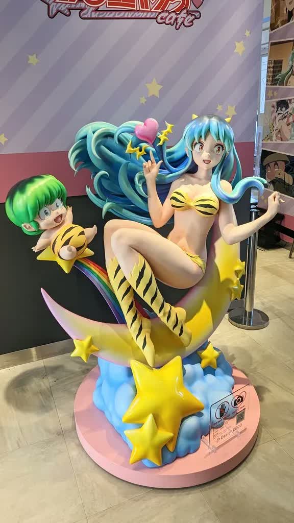 これは、多くの作品の等身大フィギュアなどを制作していることで有名な、デザインココ社が製作したもの。実はこのフィギュア、「うる星やつらカフェ」での展示終了後、購入することができるのです。