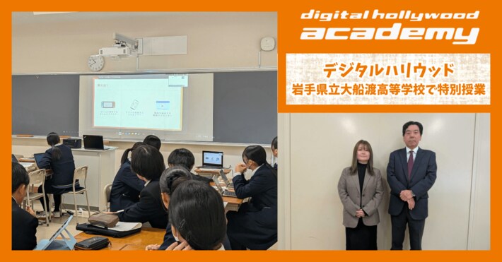 岩手県立大船渡高等学校は、前年度に引き続き「令和7年度 高等学校DX加速化推進事業(DXハイスクール)」に採択されています。前年度は、MacBookおよびFinal Cut Proの基本操作に加え、デザインツール「Canva」を活用した学校紹介動画制作の特別授業をデジタルハリウッドアカデミーにて実施しましたが、第一線で活躍する現役のクリエイターから直接デジタルクリエイティブを学ぶ機会がほしいとの要望を受け、今年度も特別授業を実施することになりました。