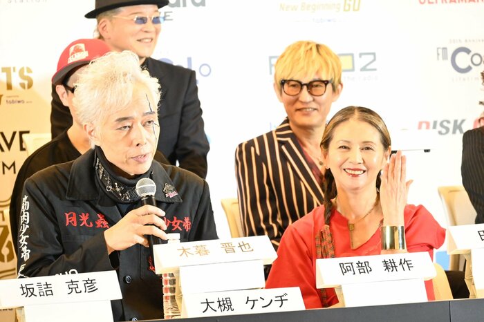 大槻ケンヂ(筋肉少女帯/特撮)さんは「小泉今日子さんの隣で記者会見をする日が来るとは。中高生時代の自分に言ってやりたい思いでいっぱいです。でも、ここで勢い余って面白いことを言おうとしてスベると、古希までつらい世を送ることになるので『頑張ります』とだけ言わせてください」とジョークで笑わせました。