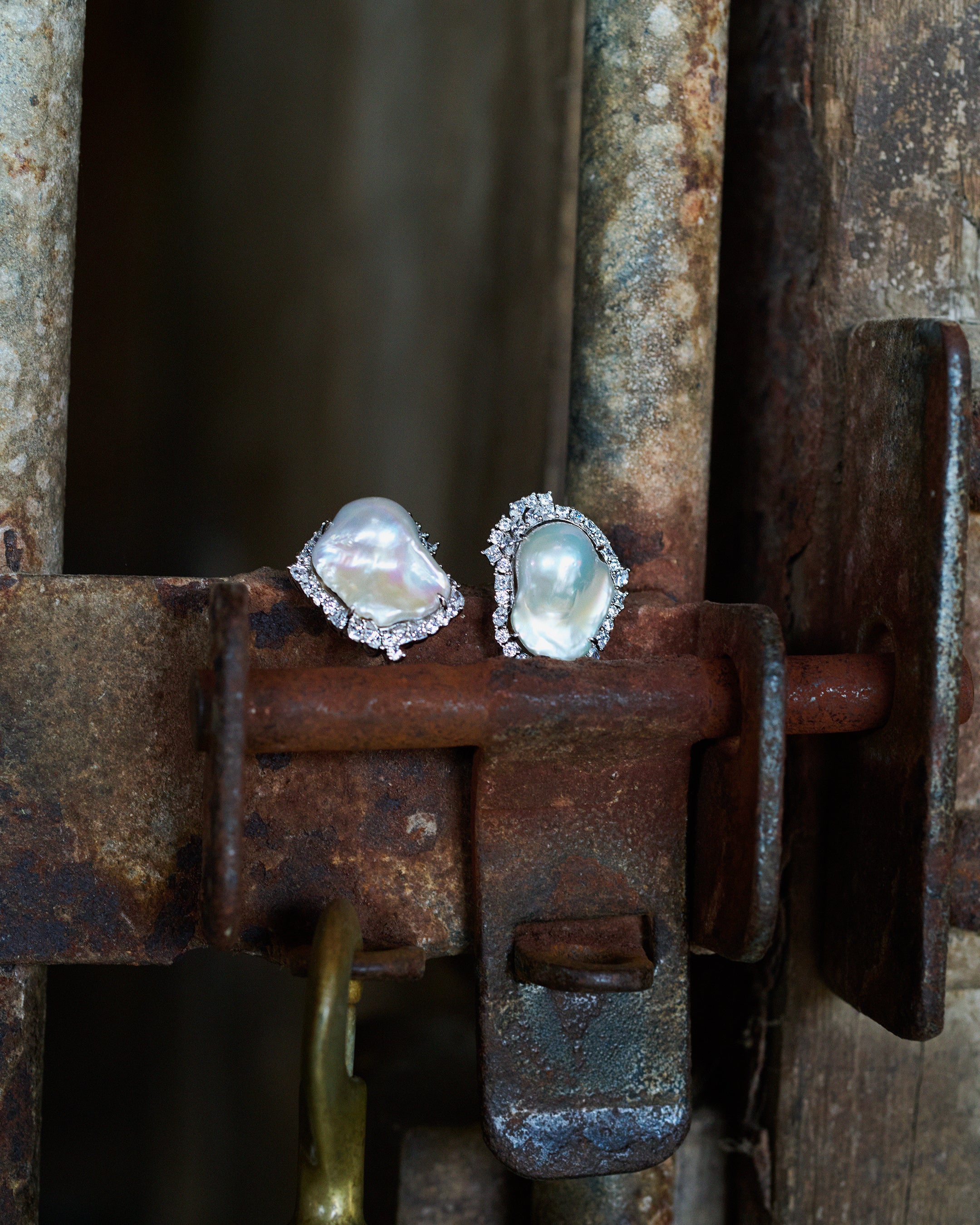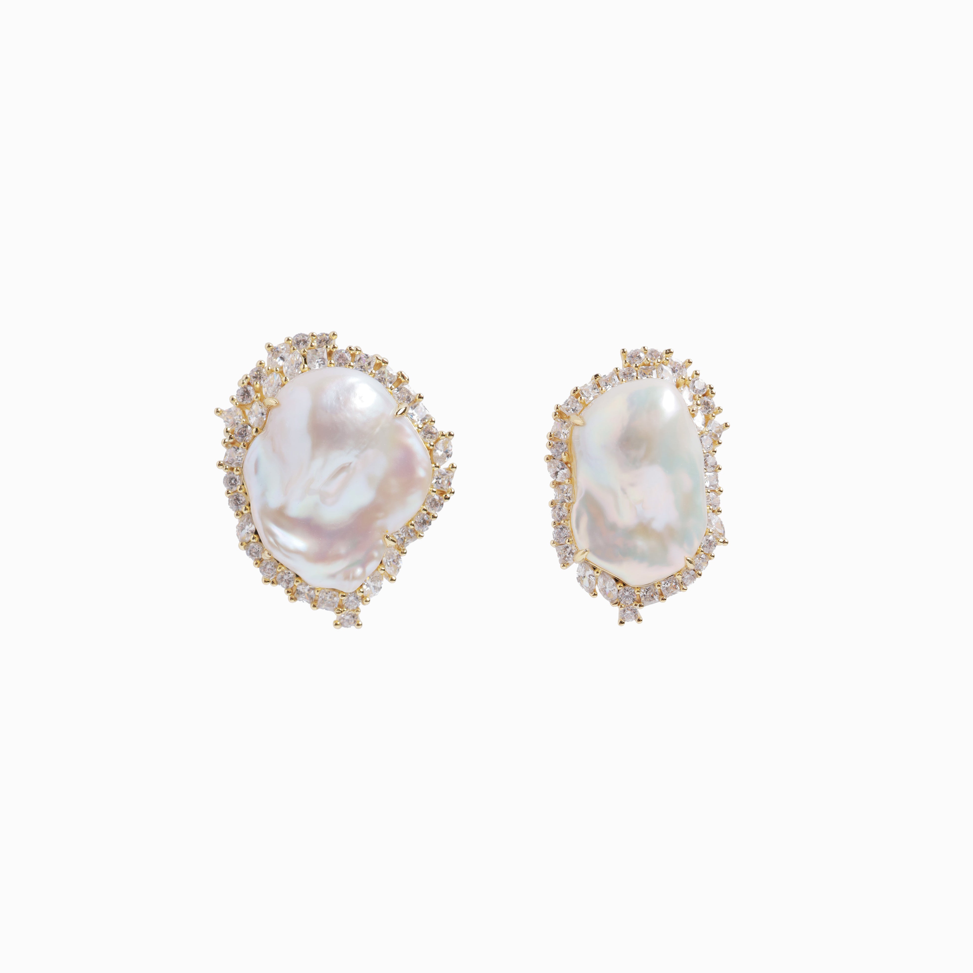 顔まわりに華やかさを添える、主役級のピアス/イヤリング。大振りのバロックパールと、ランダムに輝くキュービックジルコニアが、動きのある表情を演出します。一点投入するだけでスタイリングが決まる存在感がありながら、抜け感のあるデザインで、フォーマルからカジュアルまで自然に馴染む仕上がり。