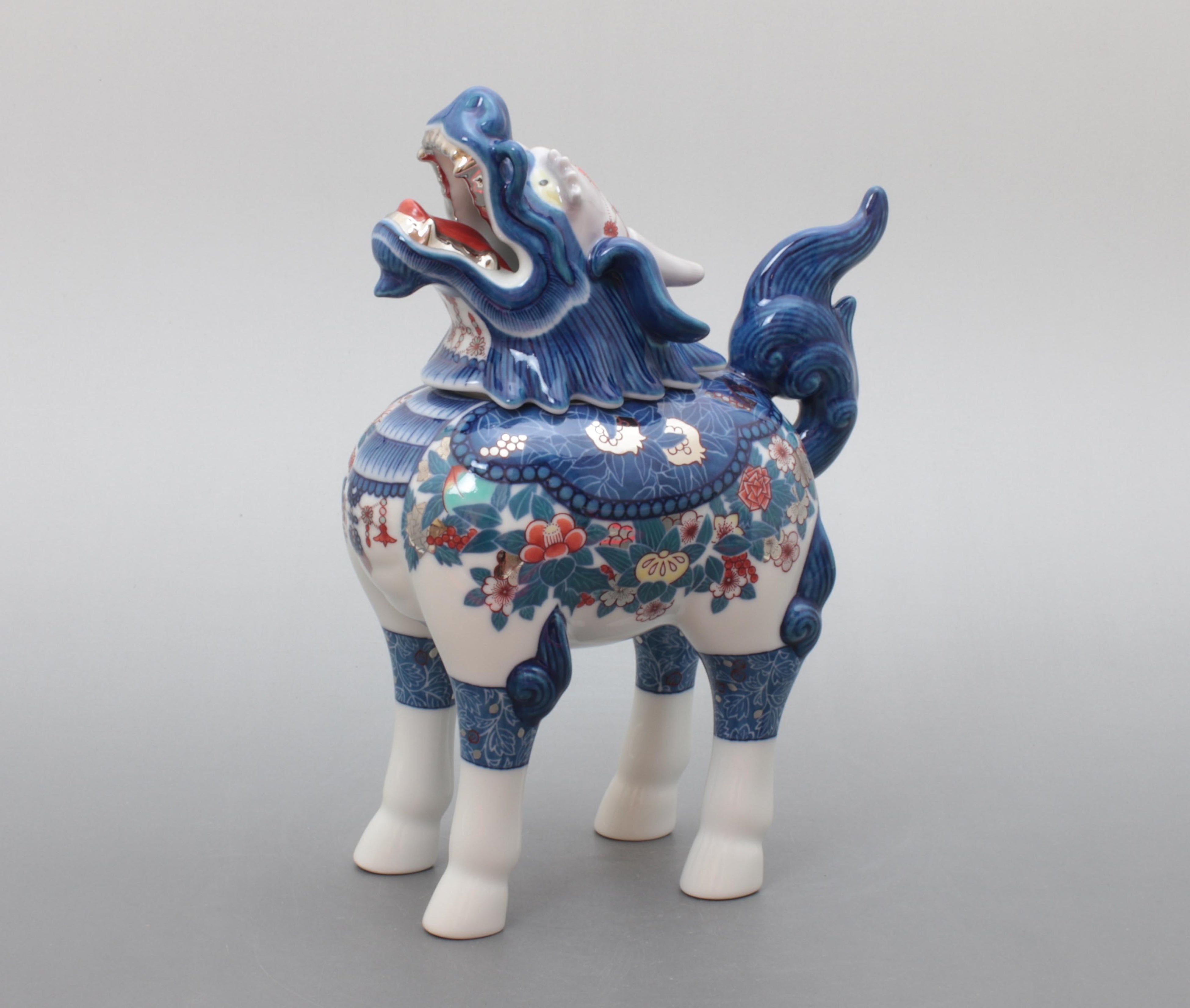 十四代 今泉今右衛門「色絵藍色墨はじき四季花文麒麟香炉」 約幅16.3×奥行9.0×高さ22.1cm 1,320,000円(税込)