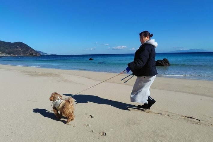 ワンちゃんと散歩しながらビーチクリーン活動