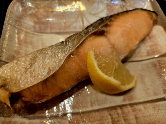 そうして焼き上げられた鮭は、皮目がパリッと焼かれレモンが添えられています。高橋さんは「しっかりした鮭でとてもグー」と、その味を絶賛しました。