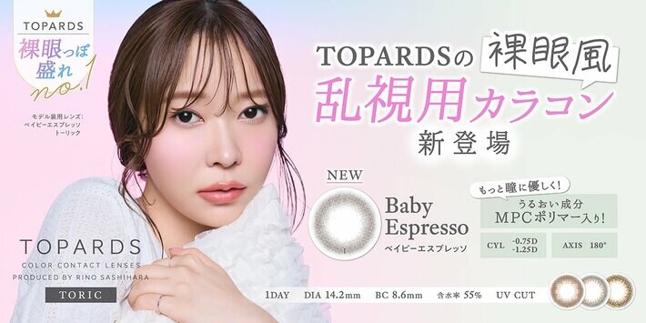 “TOPARDS裸眼っぽ盛れNo.1レンズ“「Baby Espresso(ベイビーエスプレッソ)」が乱視用カラコン『TOPARDS TORIC』シリーズに新たに仲間入り!