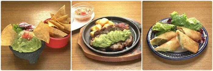 三浦瑠麗が来店したのは、厳選されたアボカドをたっぷり使用したこだわりのメキシカンフードを味わえる、女性に大人気のお店「アボカド」。定番メニューの作りたてワカモレ(900円)は、メキシコ産のアボカドにパクチーとにんにくを練り込み濃厚な味わいに。3種のハーブで味付けした豚肩ロースのステーキ、メキシカンポークハーブステーキ(1800円)は、まろやかな甘みでオススメ。ほか、たっぷりのアボカドをトルティーヤでカラッと揚げた、エビとアボカドのタキートス(650円)をいただき、テキーラをベースに新鮮なイチゴで作るストロベリーフローズンマルガリータ(1200円)で乾杯。