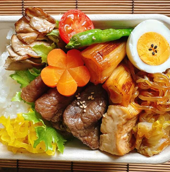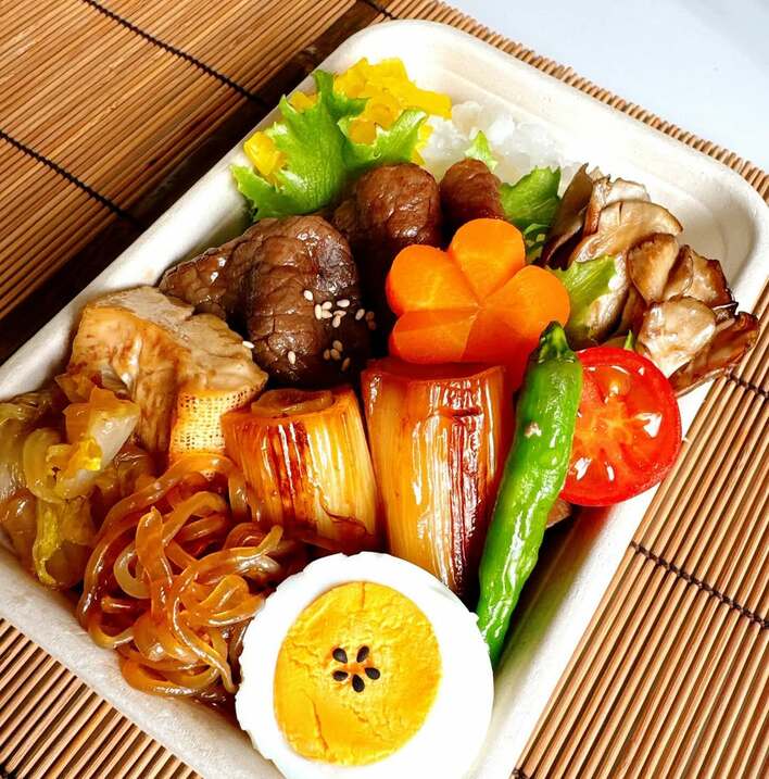 公開した写真にはお弁当箱いっぱいに詰められたすき焼きの具材たちがぎっしり!
