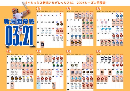 オイシックス新潟アルビレックス・ベースボール・クラブは、2026年ファーム・リーグ教育リーグ、公式戦日程について、下記の通りお知らせいたします。