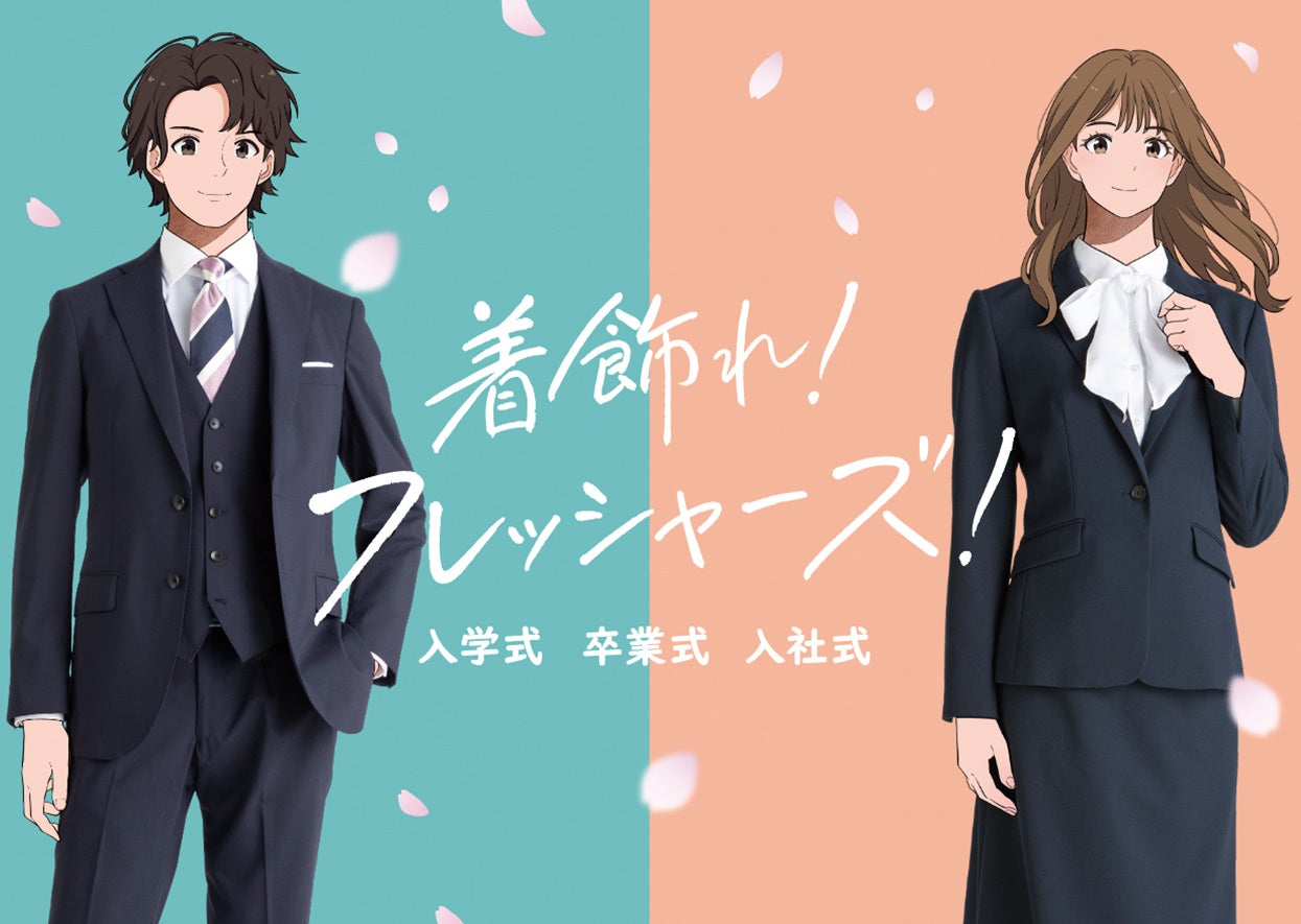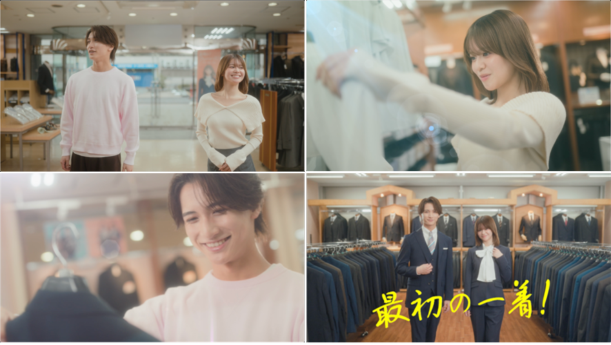 このような背景から安心して“最初の一着!”をお選びいただけるようにフレッシャーズと同世代であり、等身大の自分がイメージできる「米澤りあ」さんと「植野花道」さんを2026年フレッシャーズCMに起用することとなりました。今回のCMではフレッシュな笑顔でワクワク感が伝わるスーツ選びを演じていただいています。