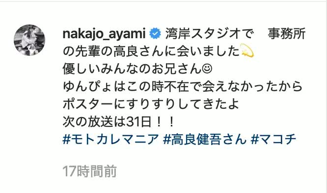 10月25日、女優の中条あやみが自身のインスタグラムを更新し、フジテレビ湾岸スタジオに訪れたことを明かした。そこで出会ったのは…