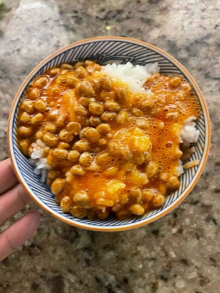 続けて、「すこし 栄養いれる、2杯、」とコメントを寄せると、納豆ご飯も公開。