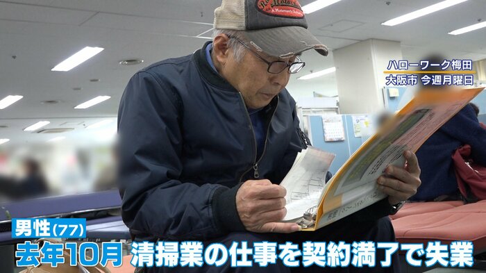 77歳の男性は2025年10月、清掃業の仕事が満期となり失業しました。同じ清掃業の仕事を探していますが、なかなか見つからないといいます。