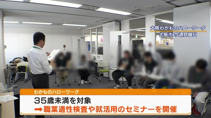 「大阪わかものハローワーク」。その名の通り35歳未満を対象としていて、職業適性検査や就活用のセミナーを開催。若者の就職を後押ししています。